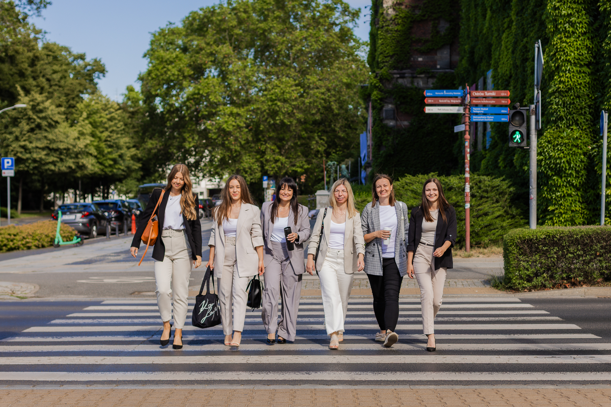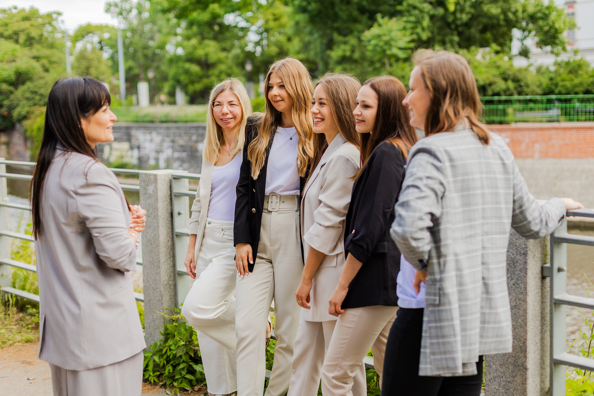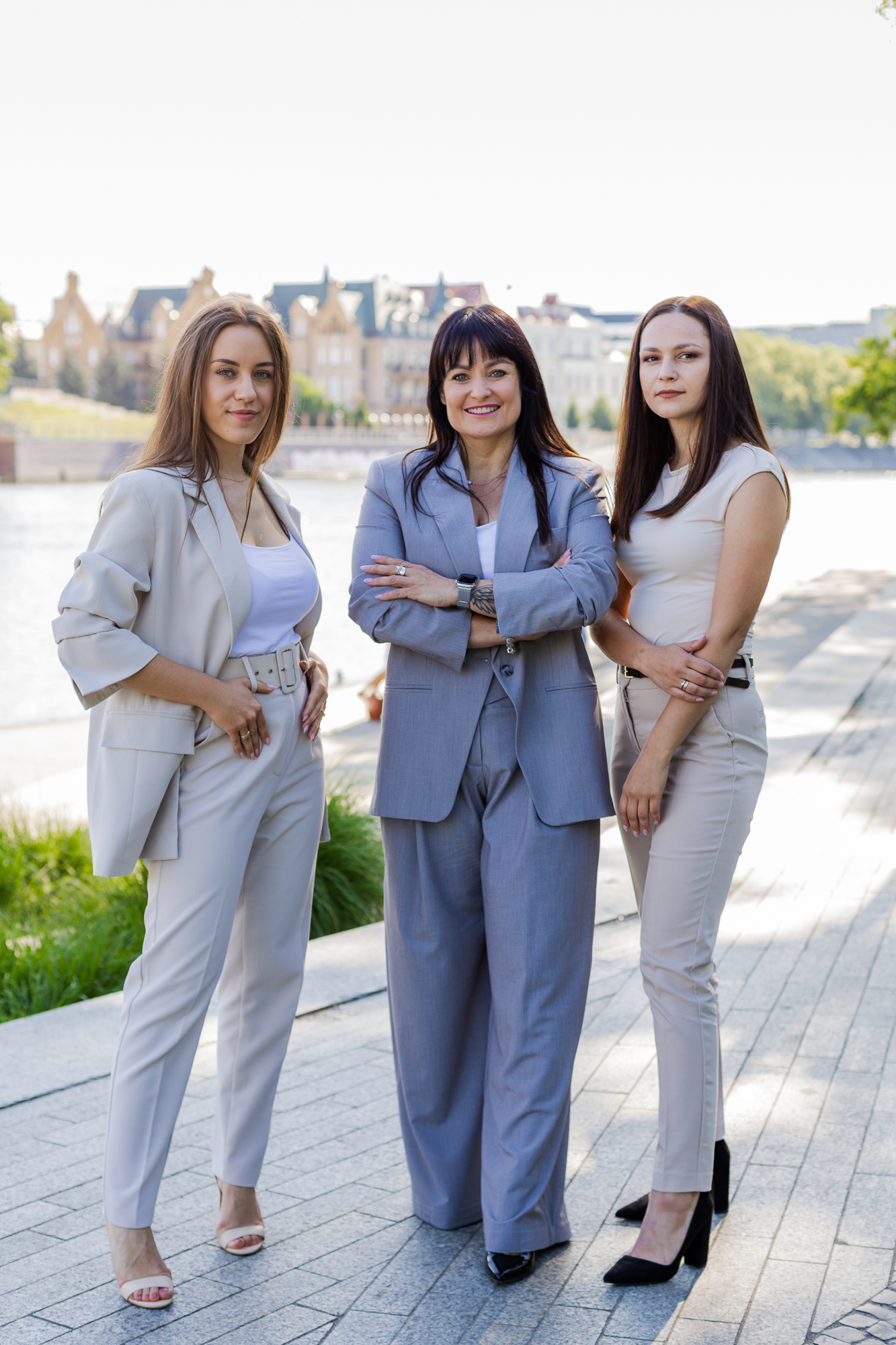 Wyjście z biura w miejski plener pozwoliło nam przełamać stereotypowy wizerunek księgowości. Zamiast statycznych portretów przy biurku, postawiłyśmy na dynamikę i nowoczesność. Te zdjęcia pokazują zespół, który jest blisko swoich klientów, trzyma rękę na pulsie i doskonale odnajduje się w tętniącym życiem świecie biznesu.