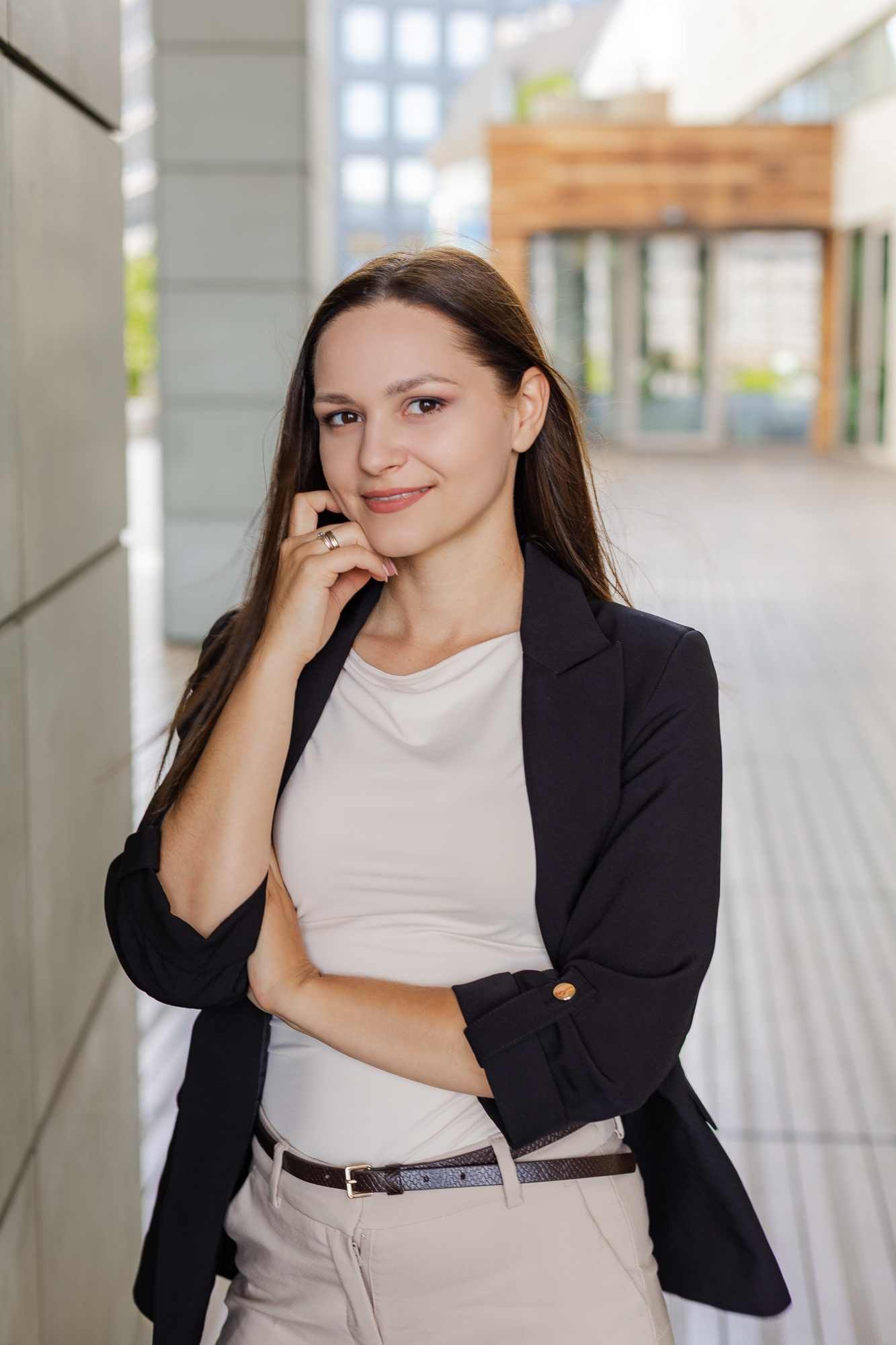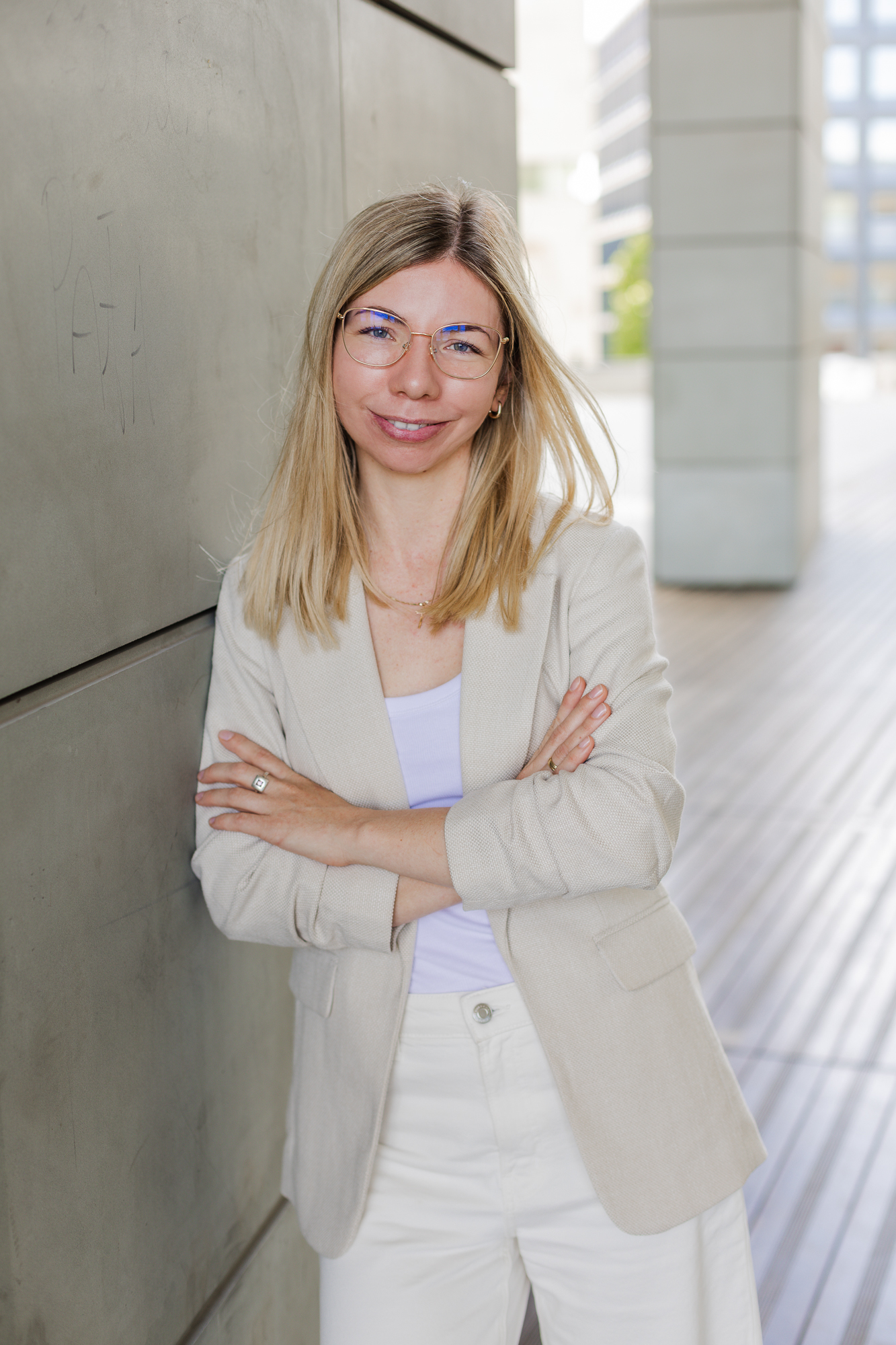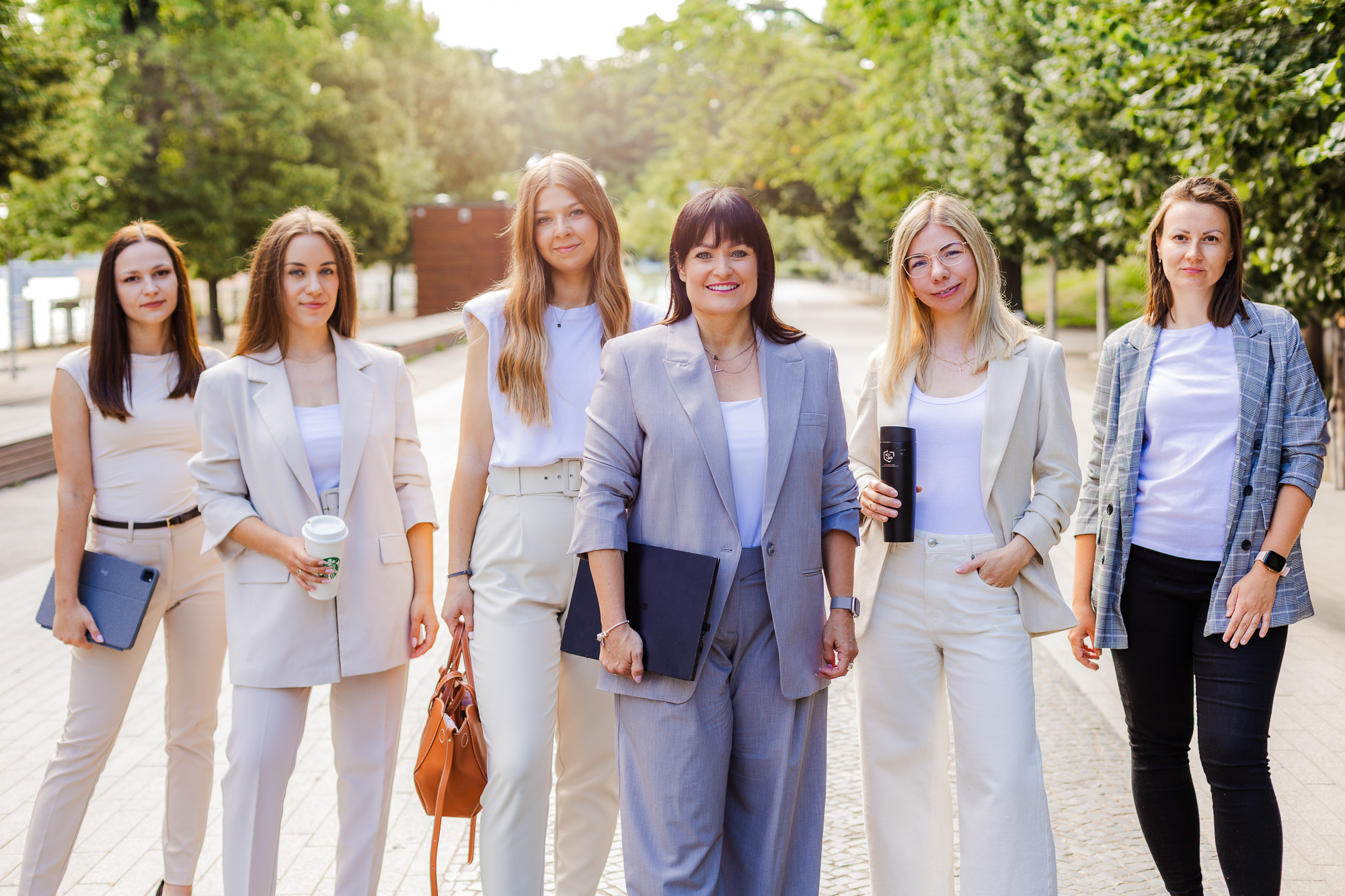 Wyjście z biura w miejski plener pozwoliło nam przełamać stereotypowy wizerunek księgowości. Zamiast statycznych portretów przy biurku, postawiłyśmy na dynamikę i nowoczesność. Te zdjęcia pokazują zespół, który jest blisko swoich klientów, trzyma rękę na pulsie i doskonale odnajduje się w tętniącym życiem świecie biznesu.